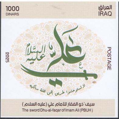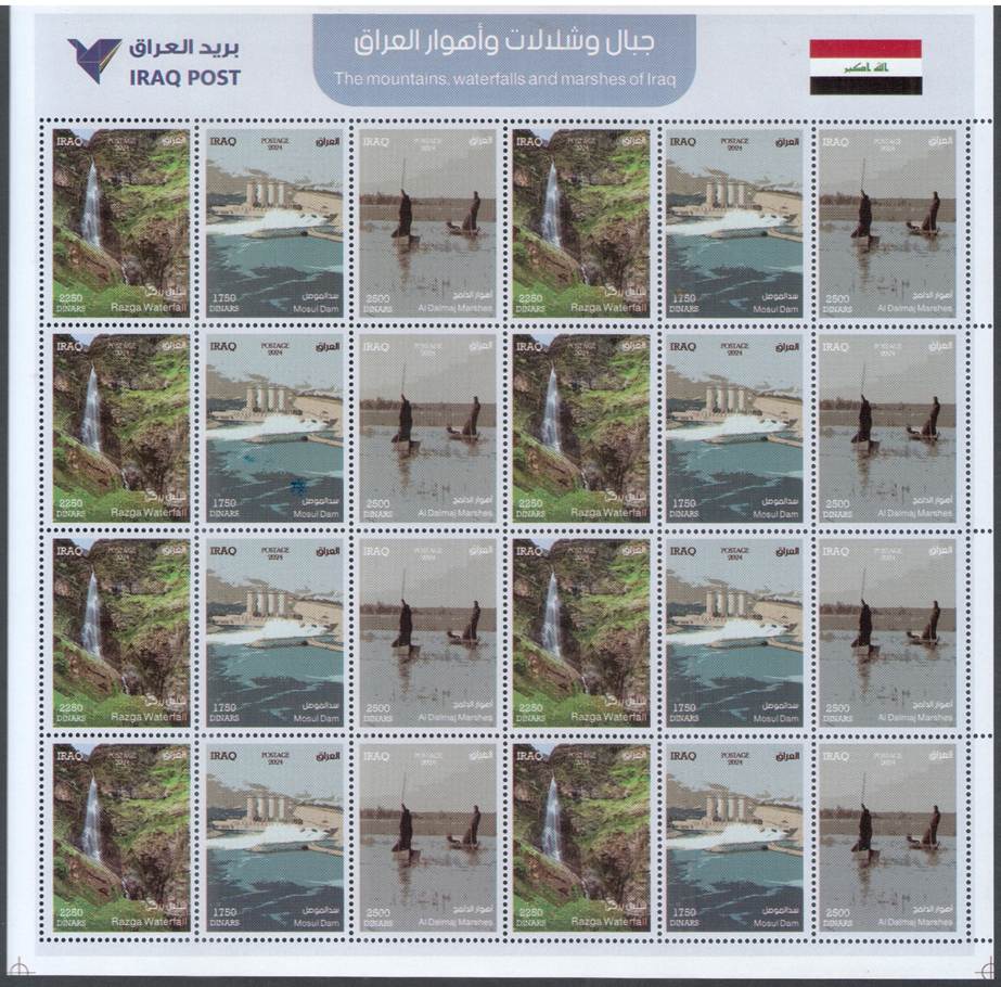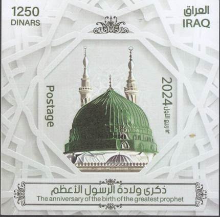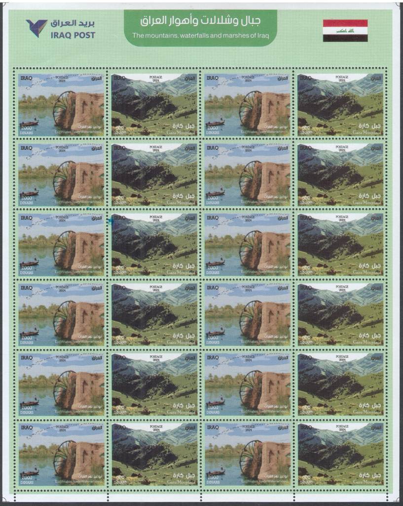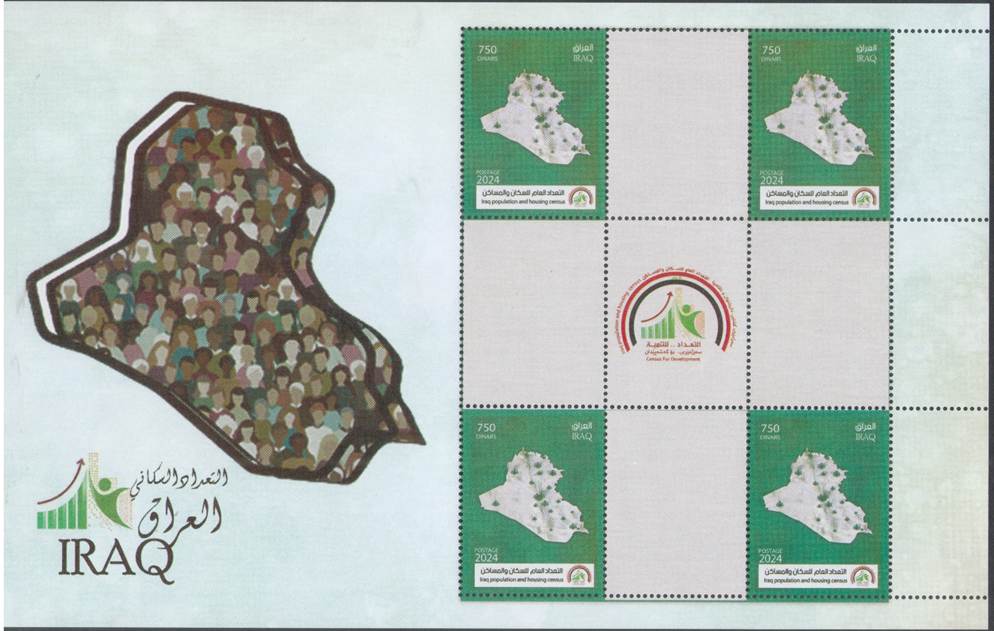 on glossy white pre-gummed paper. Printed in Iraq Post Press, Baghdad, Iraq. Quantity printed: 20,000 Sheet-lets |