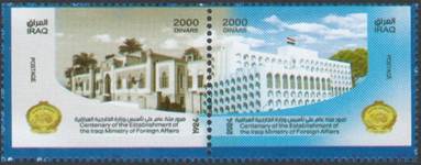 Each sheet includes a 2x5 layout of Ministry buildings stamps Color and Printing Method: Multicolored Lithography on glossy white pre-gummed paper. Printed in Iraq Post Press, Baghdad, Iraq. Quantity printed: 20,000 stamp sets |